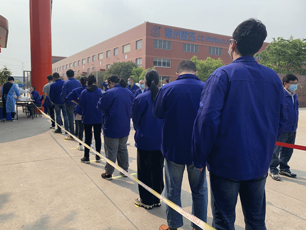 根據上級文件精神指示,4月19日下午,常州液壓成套設備廠有限公司配合開展全體員工及鄰廠單位全員核酸檢測,為安全生產築牢“防護牆”。