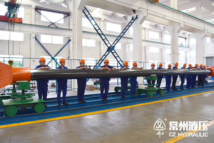 此次驗收QHLY係列液壓油缸活塞杆杆徑380mm,液壓缸內徑720mm,油缸總長17.8米,油缸行程可達12.93米,未注油狀態重達42噸,稱之為油缸中的“巨無霸”毫不過分。