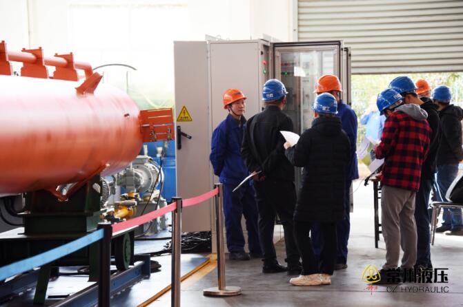 驗收組聽取了常州液壓對浙江寧海抽水蓄能電站尾水事故閘門液壓式啟閉機的油缸、泵站及電控櫃製造情況的介紹,對出廠資料進行了認真審閱。